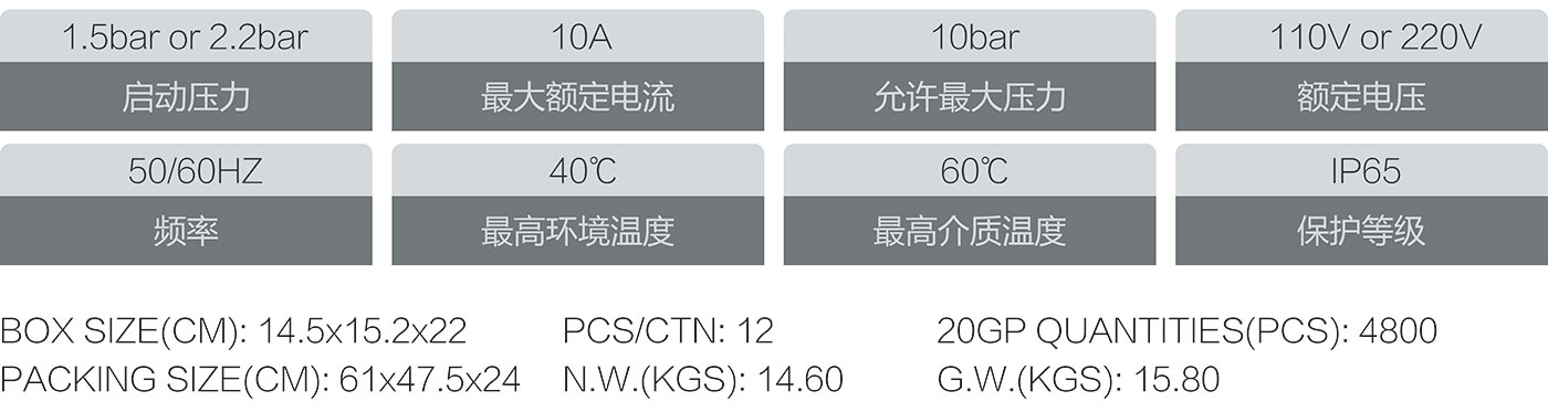 A: PC-19AB:安裝時,啟動壓力可調(diào)節(jié),調(diào)節(jié)范圍:1.5BAR-2.5BAR