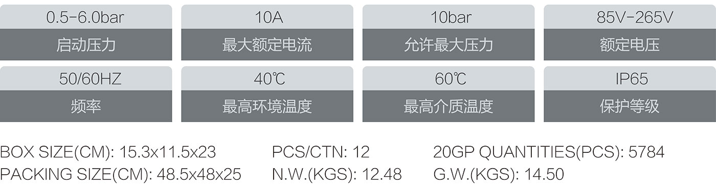 6.過壓力保護,系統(tǒng)壓力超過10bar自動停止水泵工作
