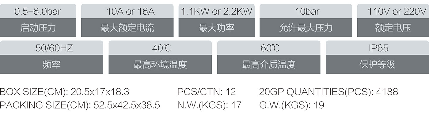 5.過壓力保護(hù),系統(tǒng)壓力超過10bar自動停止水泵工作
