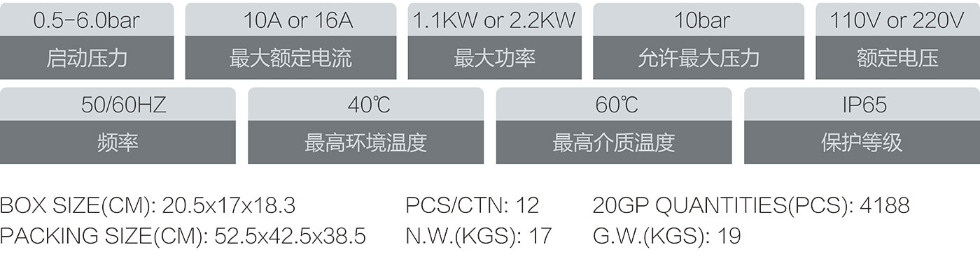 5.過壓力保護(hù),系統(tǒng)壓力超過10bar自動(dòng)停止水泵工作